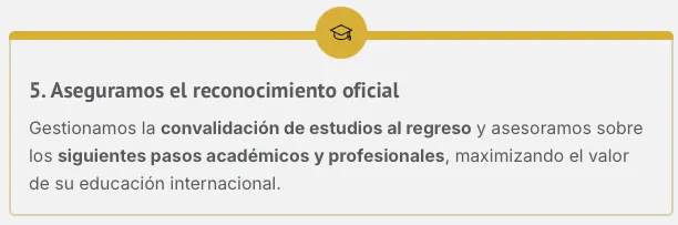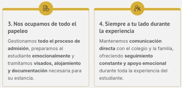 Acompañamos todo el proceso: admisión, visado, alojamiento, guardianía (si aplica) y seguros, para que la familia tenga tranquilidad total.
